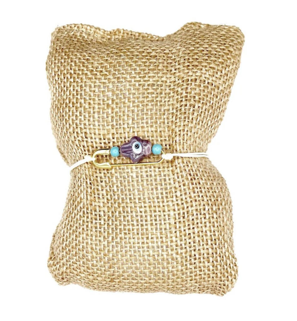 Améliorez votre style avec ce bracelet à épingle de sûreté plaqué or comportant le puissant symbole de Hamsa pour la protection. La finition de haute qualité et le design élégant créent un accessoire époustouflant qui non seulement ajoute du style à n’importe quelle tenue, mais apporte également un sentiment de sécurité et d’énergie positive.